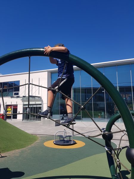 Hyppäsimme siis Nysseen ja hurautimme keskustaan. Jäimme erään kauppakeskuksen edessä pois ja kysyin, mitä Poikanen haluaisi tehdä, jos hän saisi valita mitä vain. Häntä ei voi syyttää myöskään suuruudenhulluudesta, vaan tähänkin kysymykseen sain pitkällisen pohdinnan jälkeen vastaukseksi: “Mentäiskö vaikka kiipeilemään leikkipuistoon?” Kaikista maailman asioista tämä oli se, mitä hän toivoi. Lähdin ilomielin mukaan.
