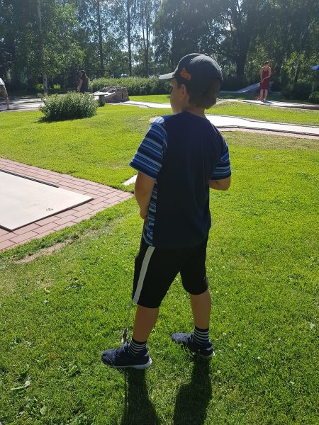 Päädyimme lopulta minigolf-radalle ja päätimme ottaa matsin. En usko sellaiseen “annetaan lapsen voittaa, ettei hänelle tule paha mieli” -mentaliteettiin, mutta olisi ehkä silloin pitänyt uskoa, sillä kärsin todellisen rökäletappion! Kestin häviön kuitenkin kuin nainen ja julistin Poikasen lastensarjan voittajaksi. Itse voitin naistensarjan… Lähdimme kotiin jäätelökioskin kautta, voittajina.