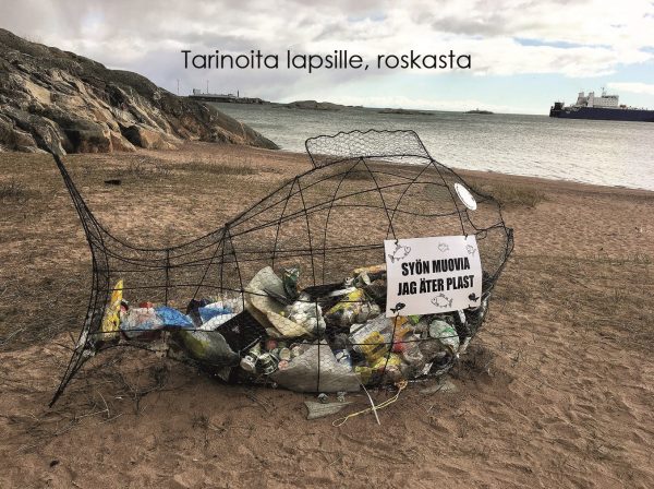Lapset Masa-muovipussin ensimmäinen merimatka